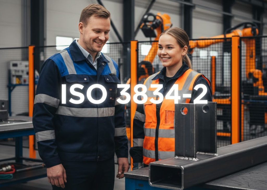 ISO 3834-2:2021 -sertifiointimme asettaa kattavat laatuvaatimukset metallituotteidemme hitsaukselliselle valmistukselle. Asiakkaillemme tämä takaa, että metallikiinnikkeiden ja -rakenteiden myynti, hankinta ja valmistus toteutetaan teknisesti tinkimättömästi ja parhaalla ammattitaidolla. Sertifioitu osaamisemme varmistaa tuotteiden kestävyyden ja luotettavuuden kriittisissäkin käyttökohteissa, aina materiaalihankinnasta lopulliseen hitsaustulokseen.